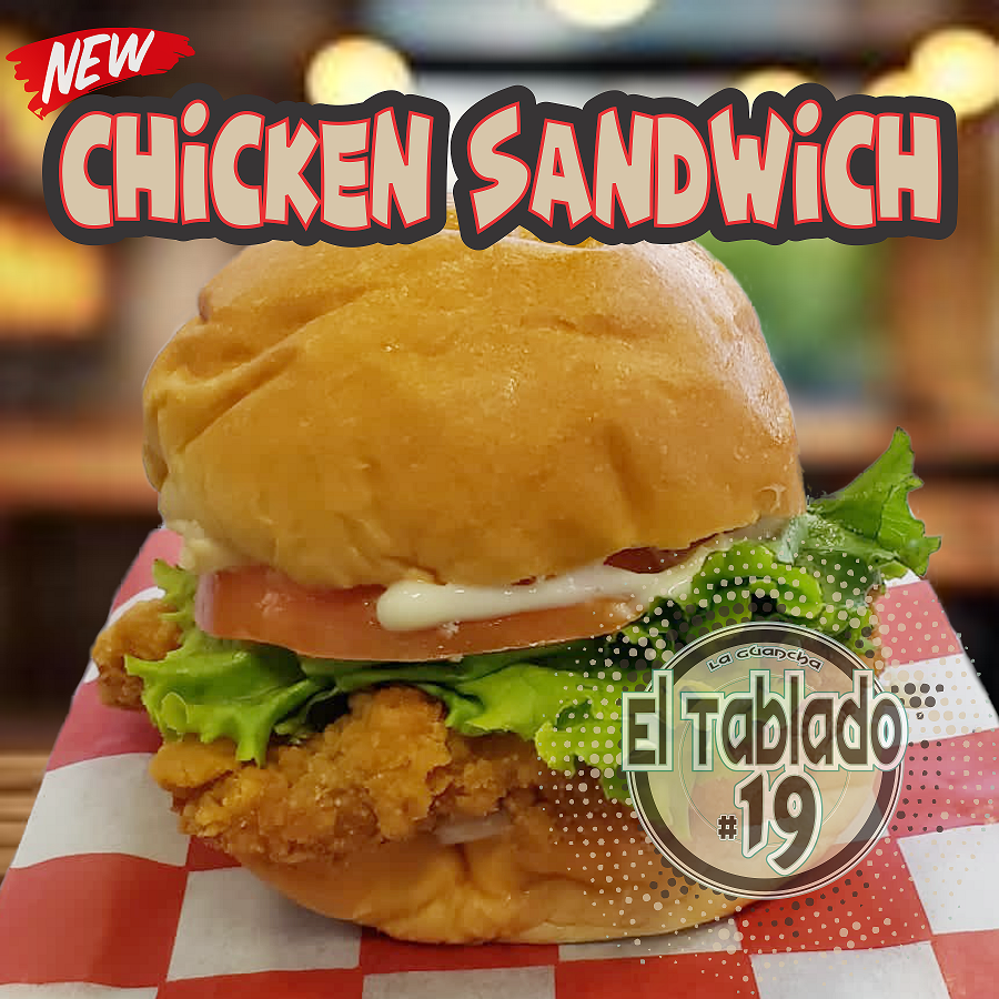 Pechuga empanada, lechuga, tomate y mayonesa en un delicioso pan.